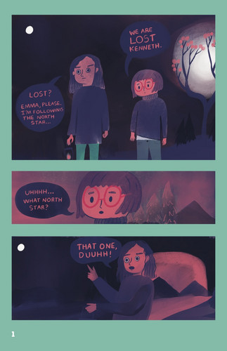 Kenneth and Emma get lost in the woods. The first part in a series of upcoming webcomics about the adventures of two silly hikers and some monsters and other creatures they meet along the way.